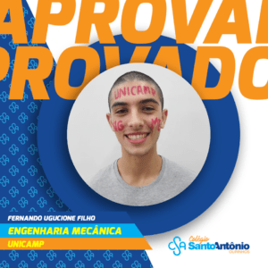 “O Colégio Santo Antônio teve importância muito grande no meu desenvolvimento pessoal. Eu ficava no Colégio o dia todo e a atenção dos professores, coordenadores e colegas de classe foi fundamental para que eu conseguisse esse resultado. Aqui é humano, sempre estão prontos para ajudar a qualquer momento. Agradeço muito a todos”, diz o ex-aluno do curso pré-vestibular Fernando Ugacione Filho, aprovado em Engenharia Mecânica na UNICAMP e em Engenharia Mecatrônica na USP.