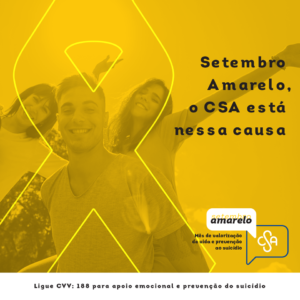 O público interno do CSA também é lembrado no ‘Setembro Amarelo’ e os setores têm a possibilidade de trabalharem o assunto, com conversas e mensagens relacionadas ao tema. A comunidade escolar do CSA tem à disposição, durante este mês, a ‘Árvore da Vida’, oferecida para que todos expressem seus sentimentos e compartilhem mensagens. Além disso, nas redes sociais do Colégio estão sendo publicadas dicas e orientações para que todos entendam a importância da iniciativa.